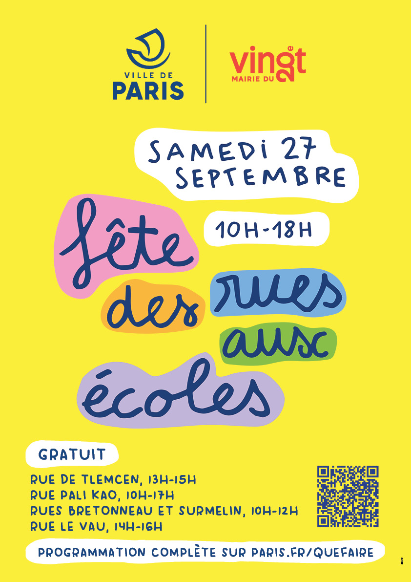 Pour cette nouvelle édition, la fête des rues aux écoles revient dans 4 rues du 20e : rue de Tlemcen, rue Pali Kao, Rue Bretonneau, rue Le Vau.