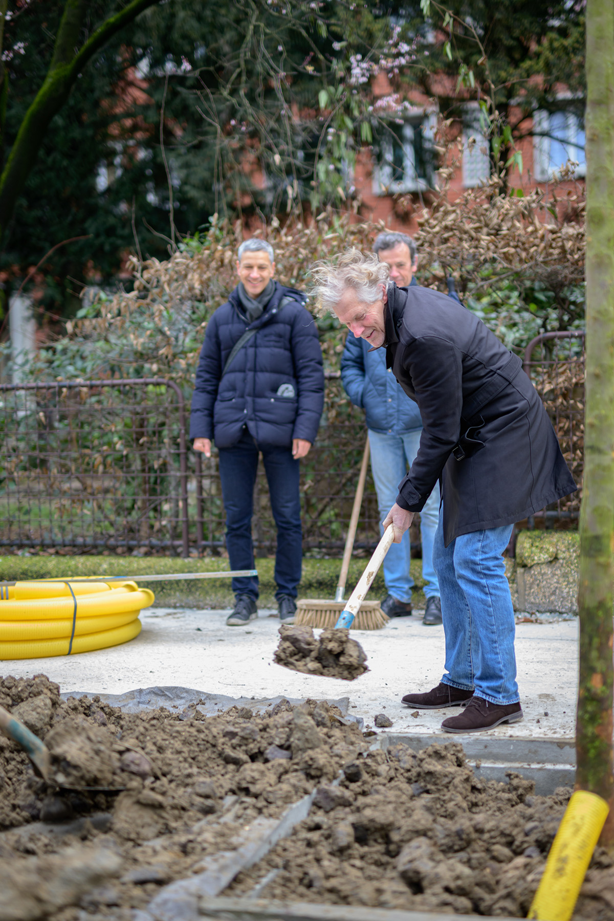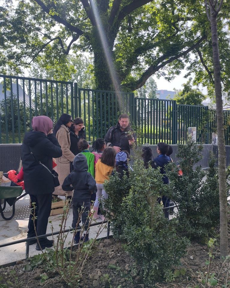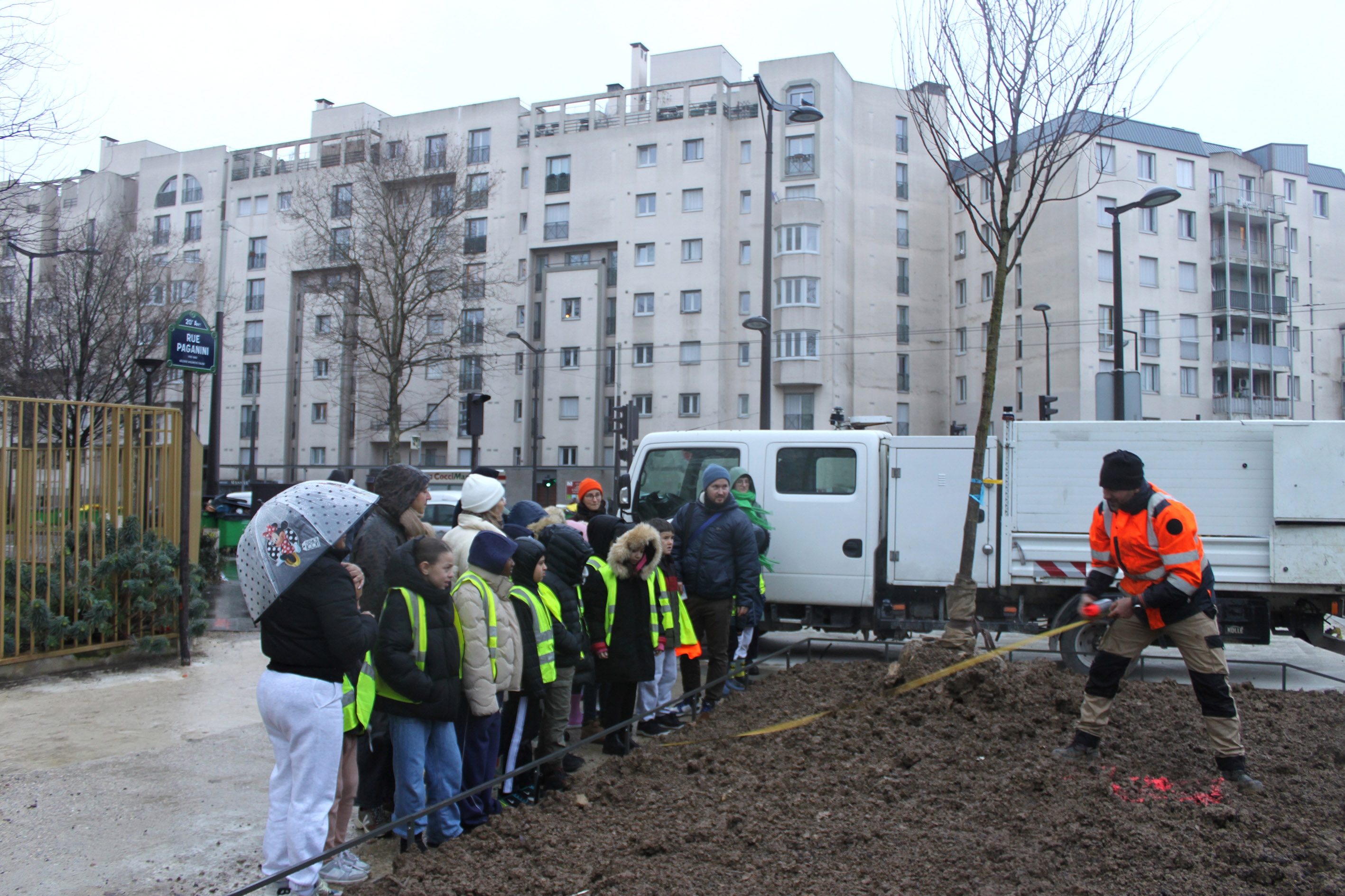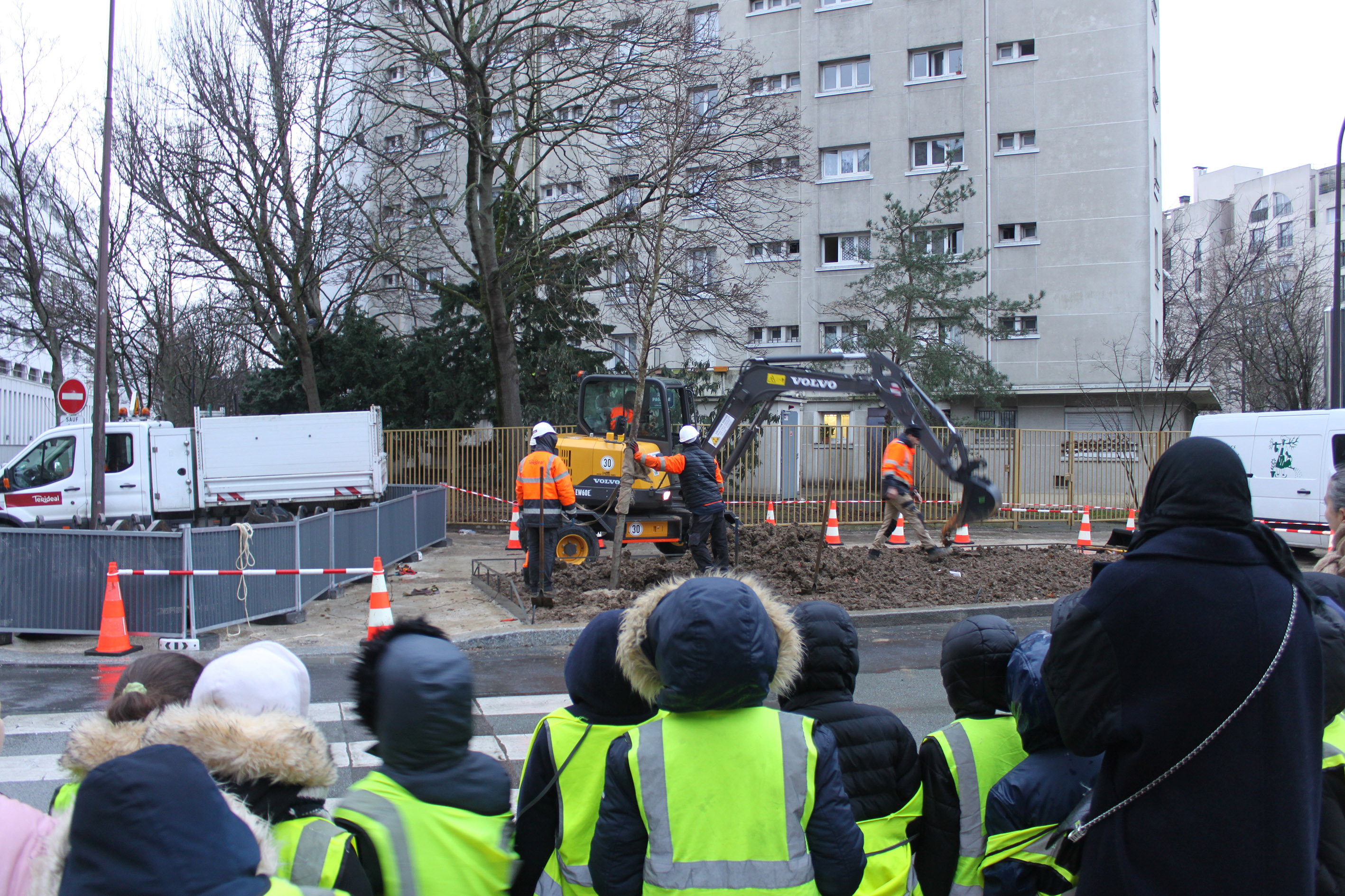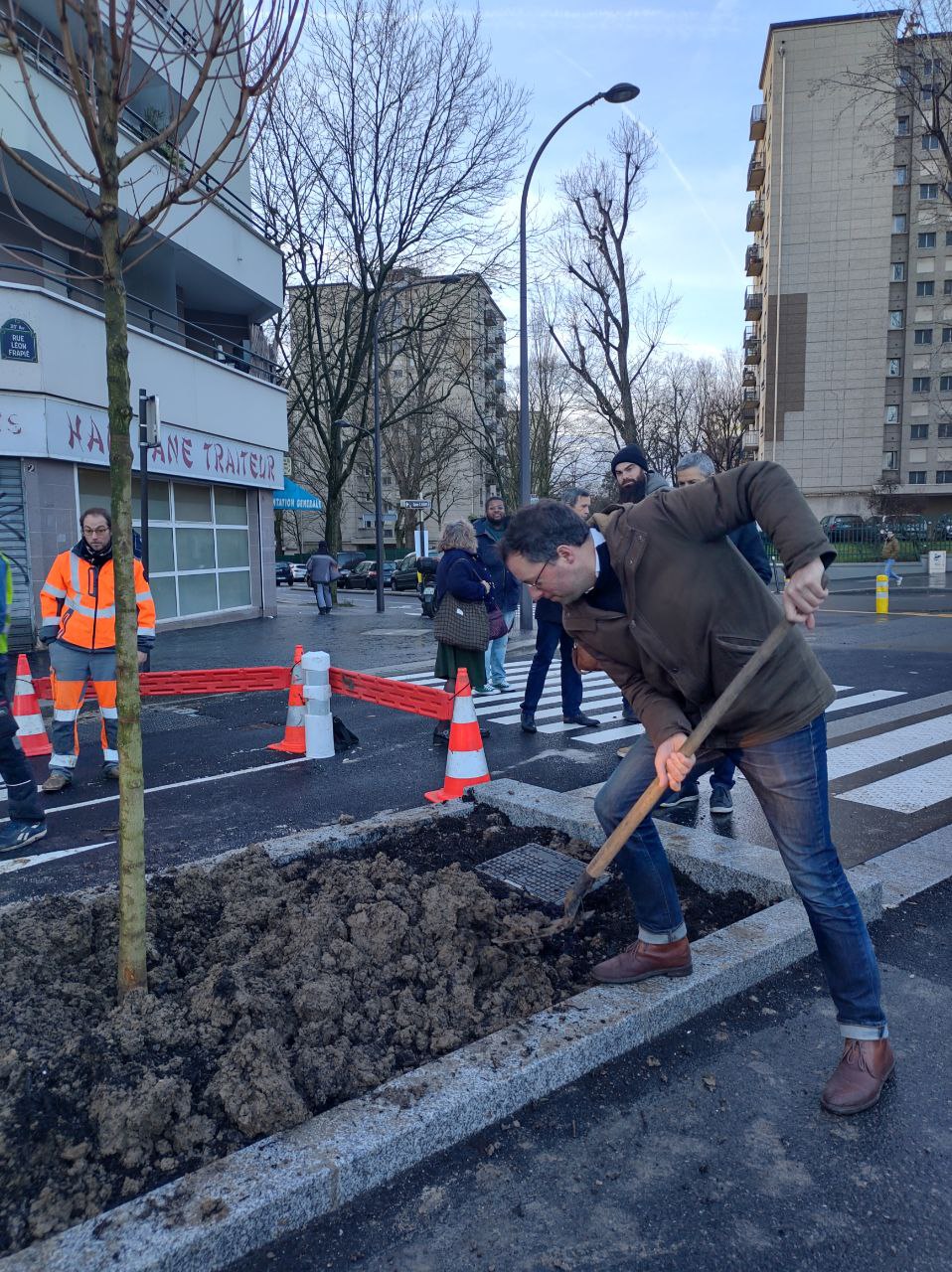 Début avril 2024, plus de 40 arbres sont plantés rues Le Vau et Dulaure - des aulnes, des ormes et des noisetiers - en présence des enfants de l'école du 8 rue Le Vau.