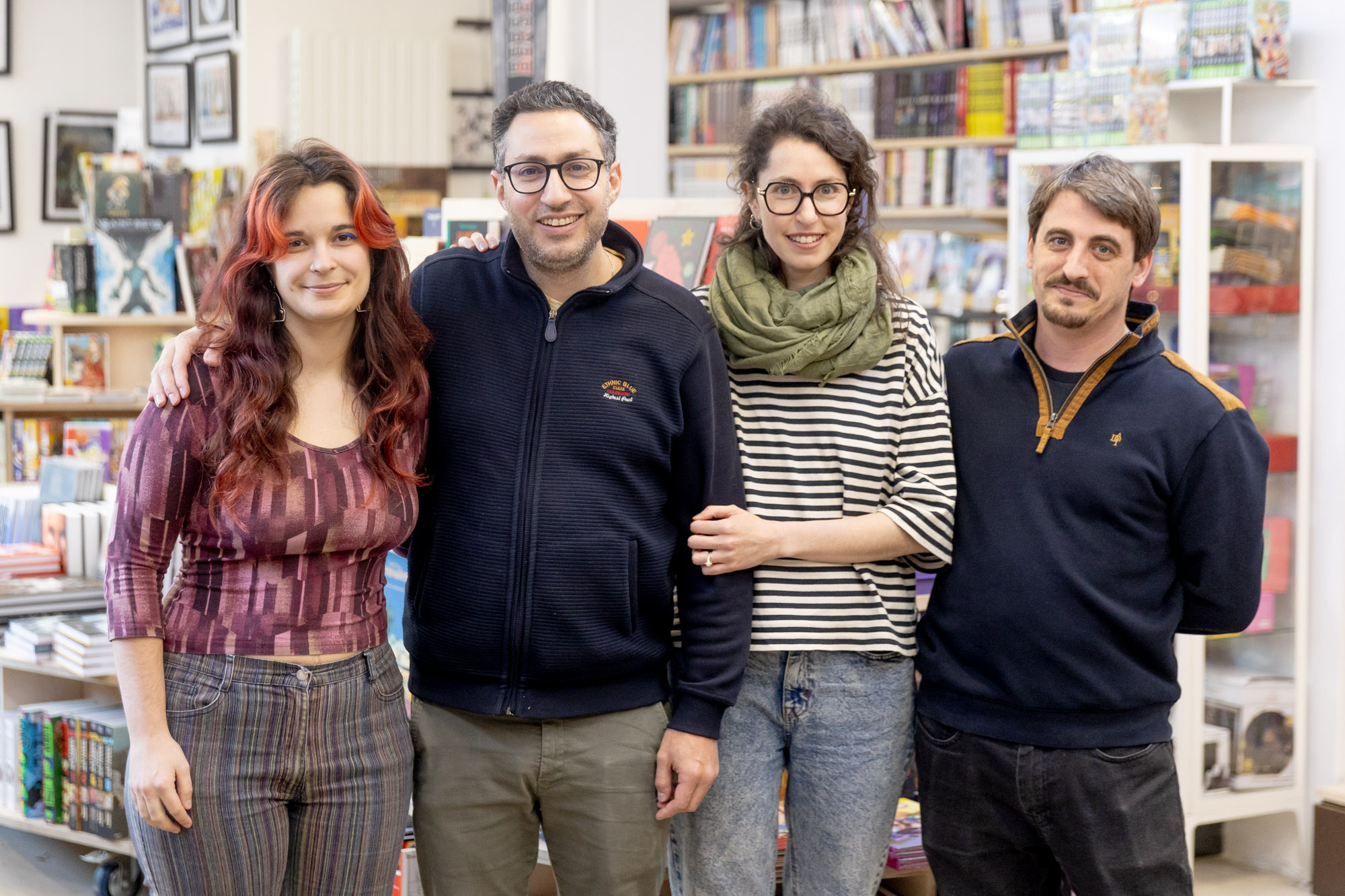 De gauche à droite : Romane, Julien, Anne et Louis, les 4 passionnés à disposition pour conseiller les lecteurs du quartier.