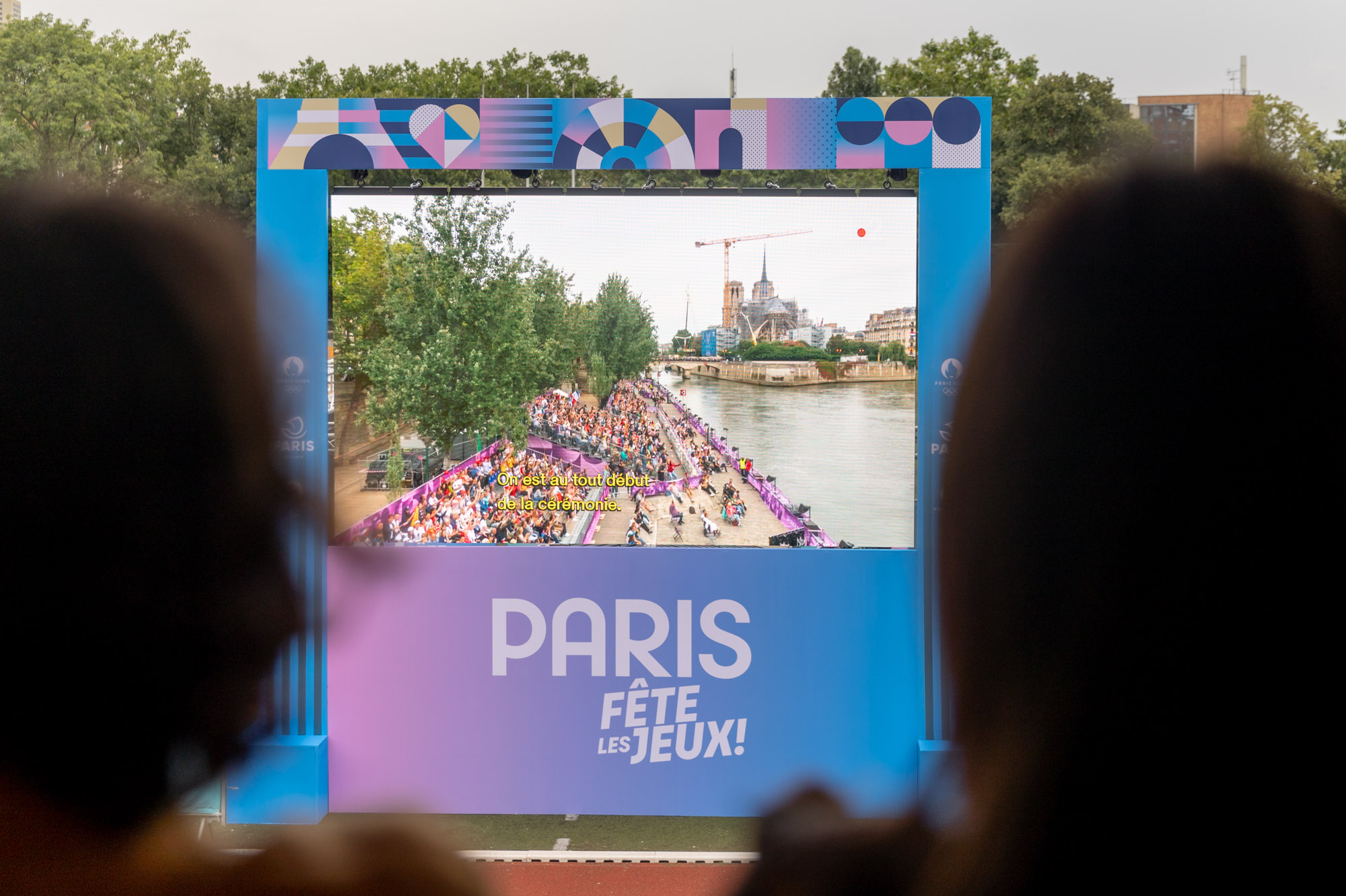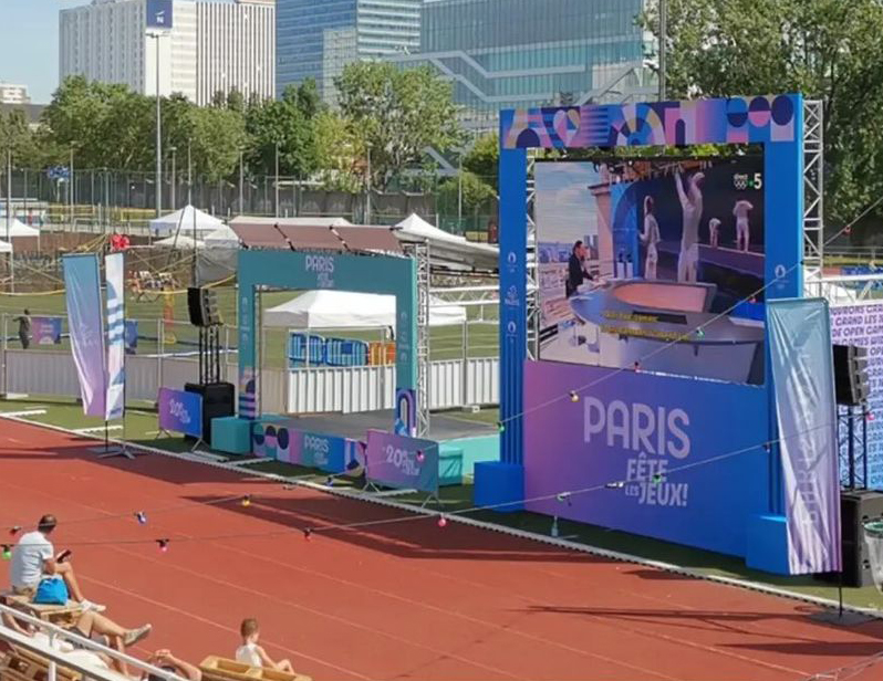 Retransmission des Jeux de Paris en direct sur un écran