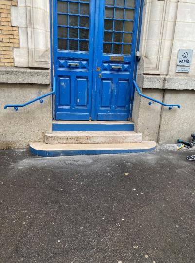 Collège Léon Gambetta installation d'une bande podotactile dans l'escalier