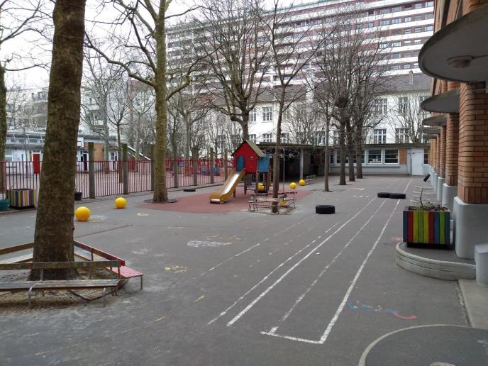 École élémentaire 11 rue de Lesseps après rénovation des sanitaires cour
